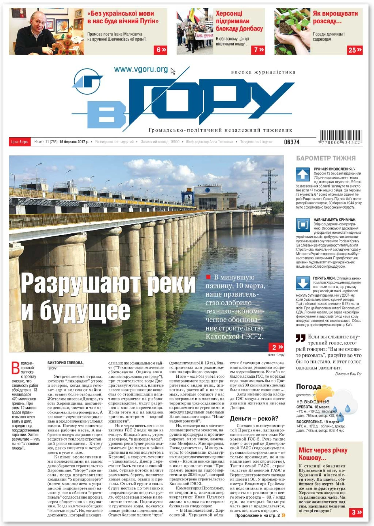 Надійшов у продаж свіжий номер популярної газети «Вгору». Коротко про його теми: