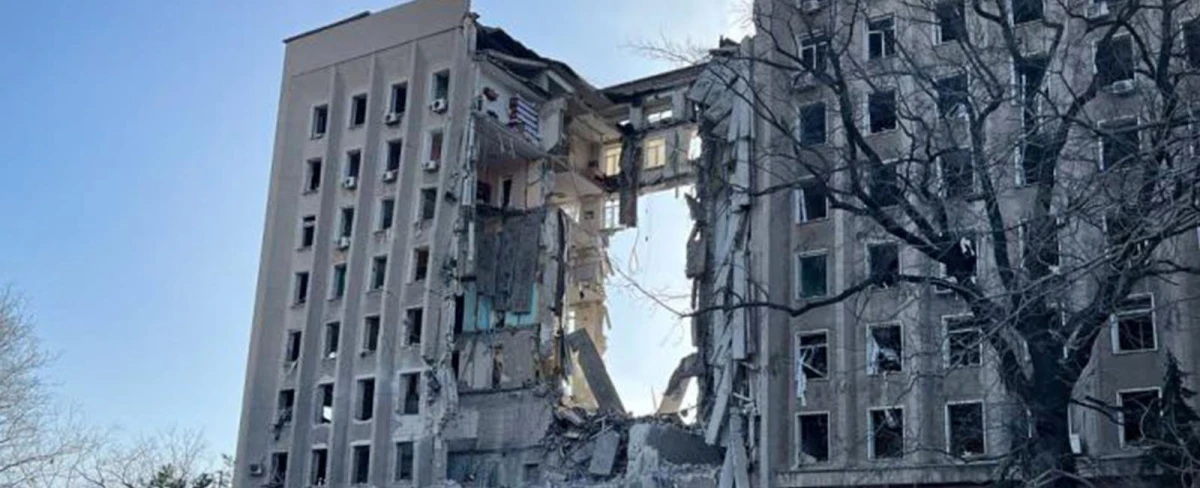 Сьогодні близько 8.45 під час обстрілу в Миколаєві один зі снарядів влучив у дев’ятиповерхову адміністративну будівлю, повідомляє ДСНС України. В результаті зруйновано центральну секцію будівлі з 9