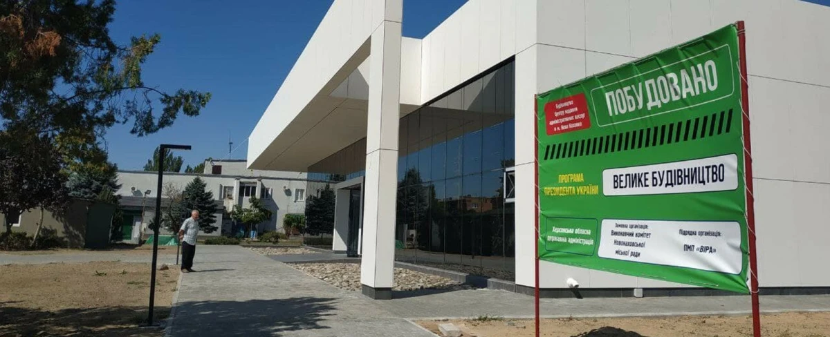 Окупанти зайняли приміщення ЦНАПу у Новій Каховці та показали у пропагандистських ЗМІ це таким чином, ніби вони власноруч «будували» Центр для швидкої інтеграції у рф. На стінах залишилася частина