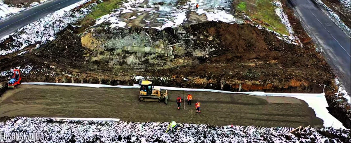 Повним ходом йдуть роботи з відбудови зруйнованого під час бойових дій моста на ділянці Херсон – Миколаїв.