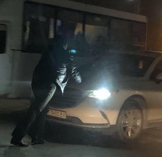«Информатор Херсон» опубликовал фото с места ДТП, на котором видно, что мужчина мешает проехать иномарке.