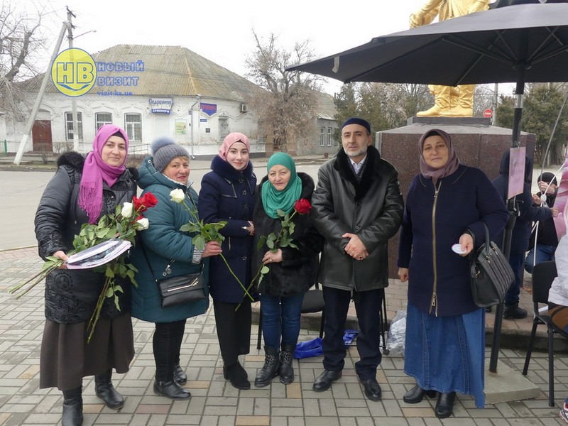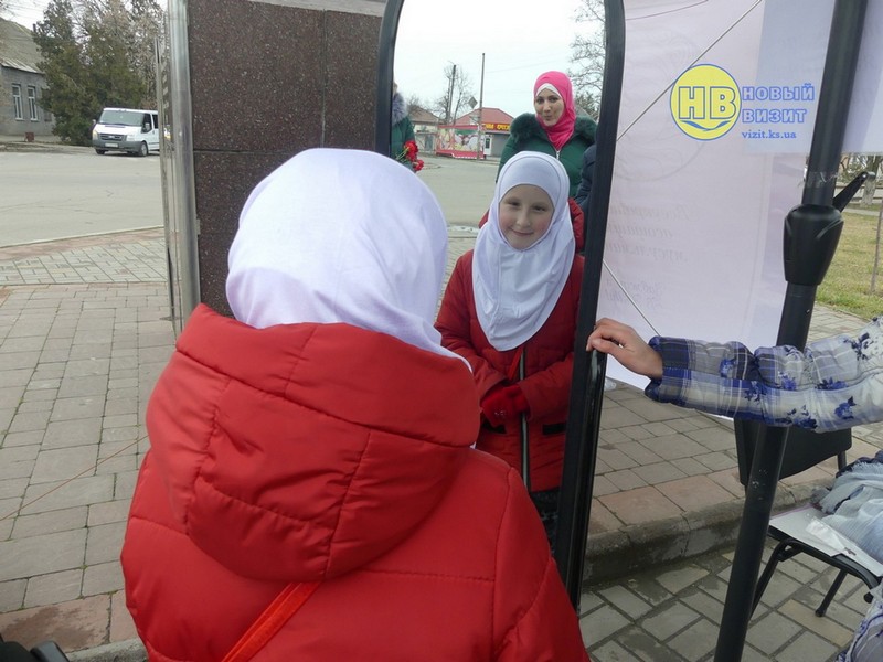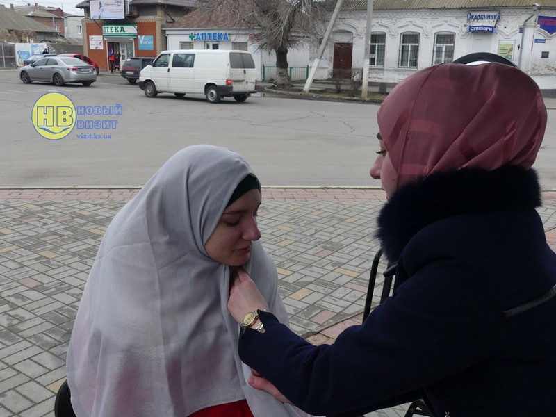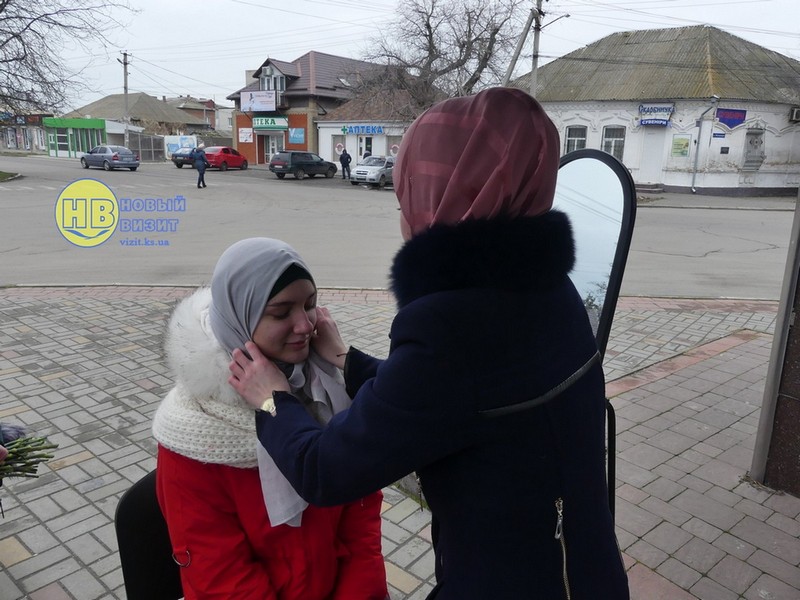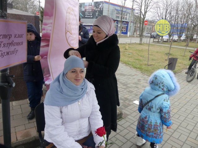 Активистки Всеукраинской ассоциации мусульманок в Геническом районе прямо на улице дарили женщинам цветы и рассказывали о Хиджабе и об Исламе в целом. А так же всем желающим провели мастер-класс по завязыванию платка, сообщает Новый Визит.