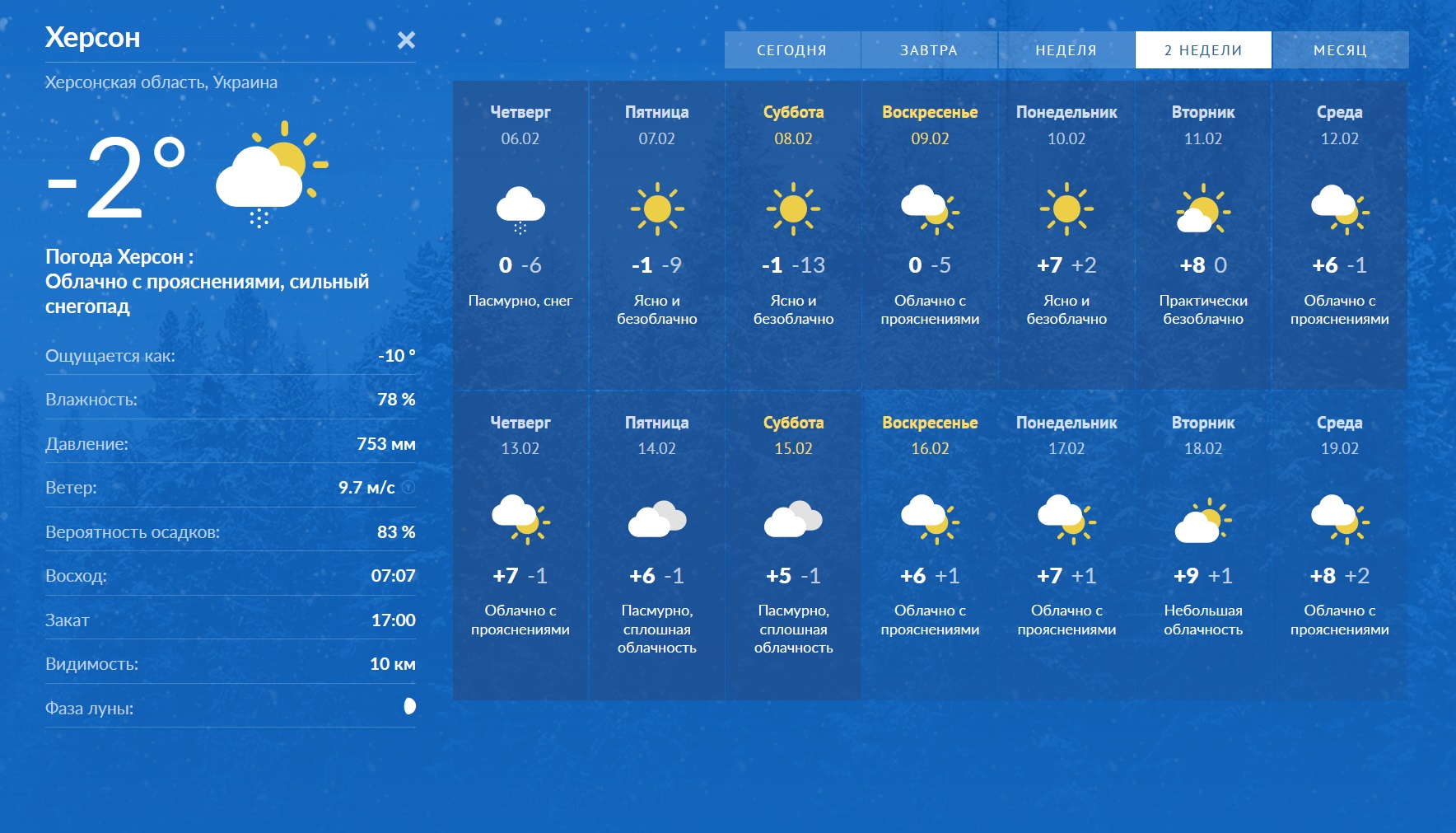 Погода на ближайшие 14 дней.
