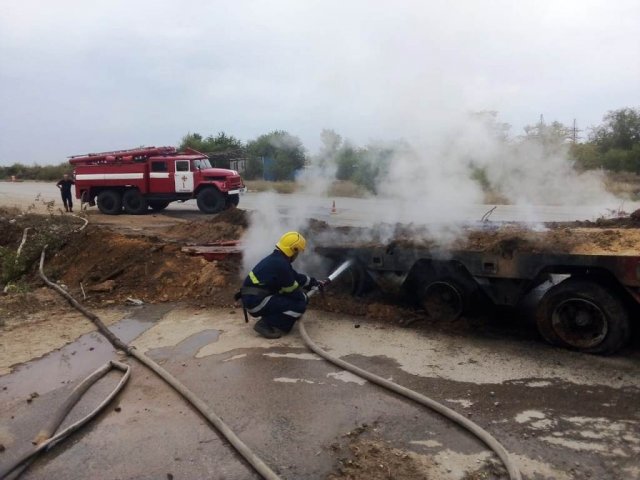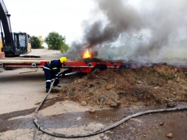 Бериславские пожарные ликвидировали возгорание автомобильного трала