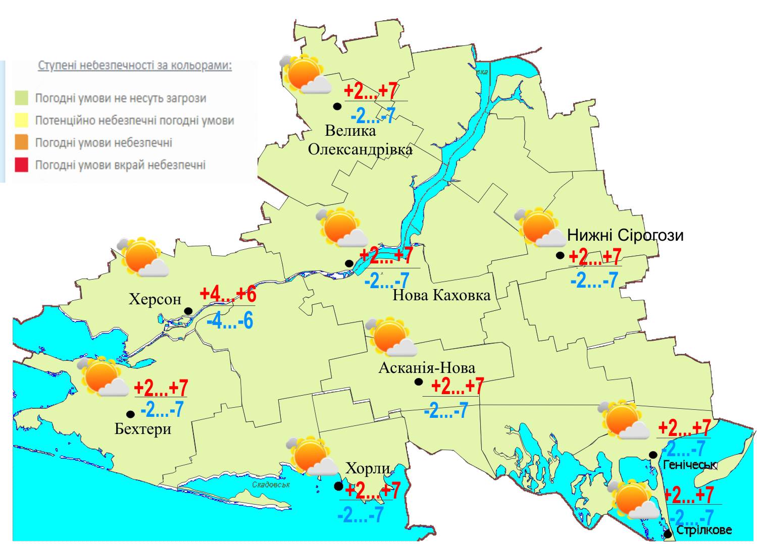 25 февраля 2021 по Херсонской области и по городу Херсону: Опасных метеорологических явлений не ожидается.