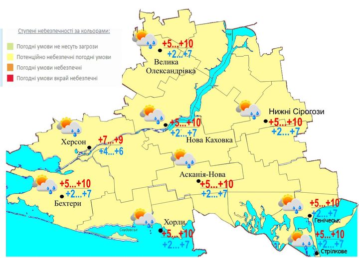 18 марта 2021 по Херсонской области и по городу Херсону: Ночью и утром туман (1 уровень опасности-желтый).
