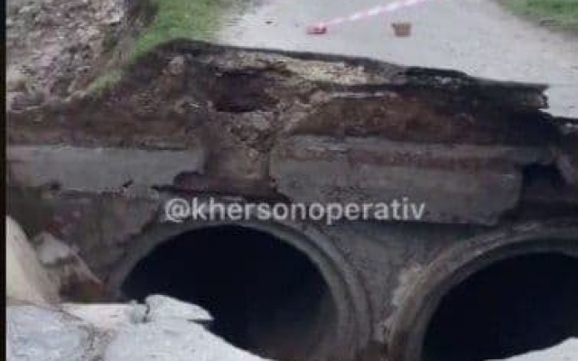 В самом центре Херсона на ул. Колодезной за «Моцартом» провалился асфальт.Огромный фрагмент дороги просто ушел под землю, оставив после себя гору обломков и зияющую дыру посреди улицы.
