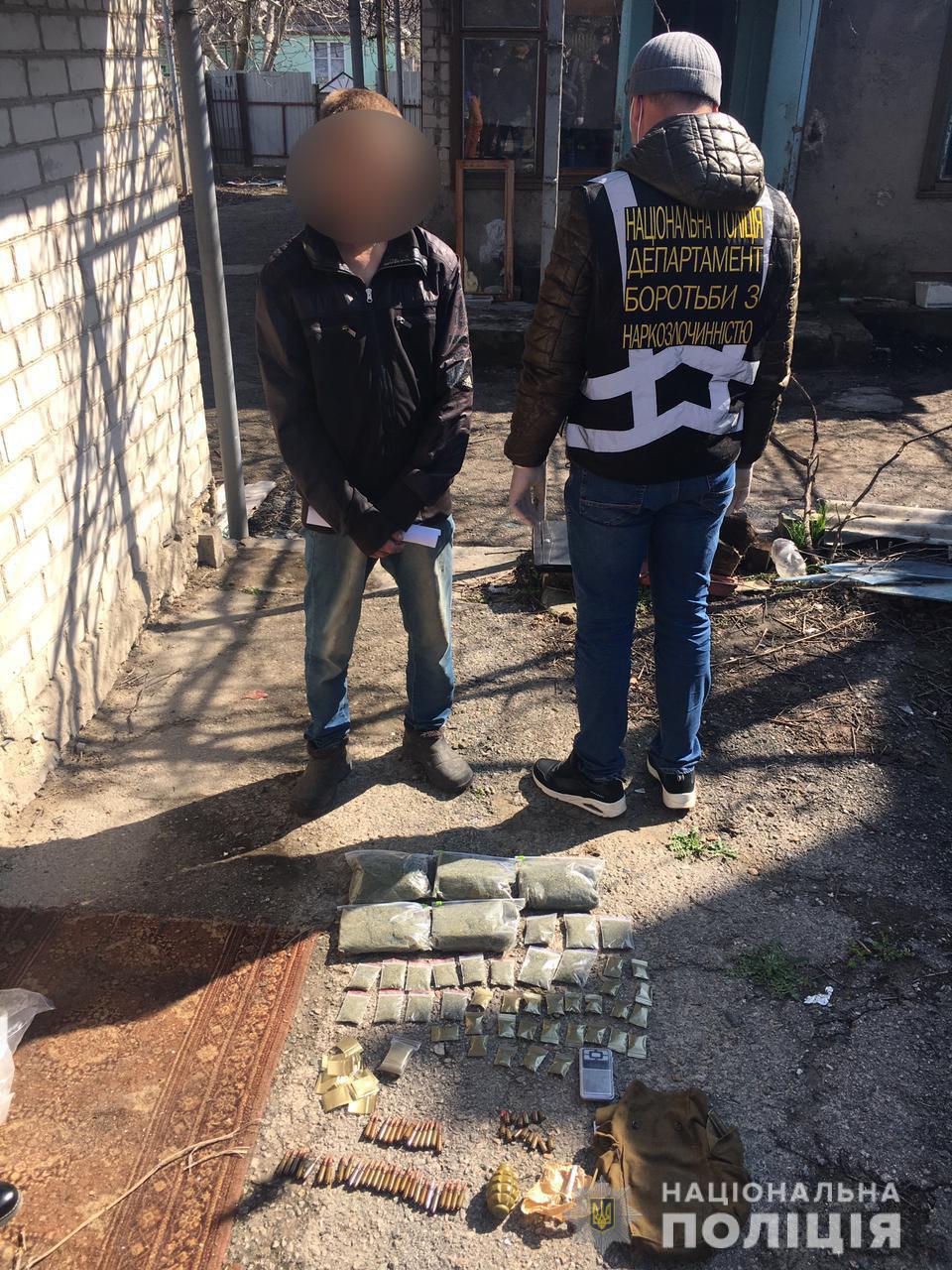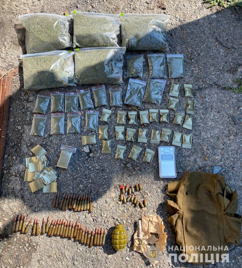 Как сообщил начальник Главного управления Национальной полиции в Херсонской области Александр Прокудин, полицейские провели санкционированный обыск в доме злоумышленника, где он хранил уже готовы к сбыту 43 зип-лок пакеты с каннабисом общим весом 2 килограмма, граната Ф-1 с запалом, а также 57 патронов к автомату и пистолету. Общая стоимость изъятого наркотического средства по ценам «черного рынка» составляет примерно 200 тыс. гривен.