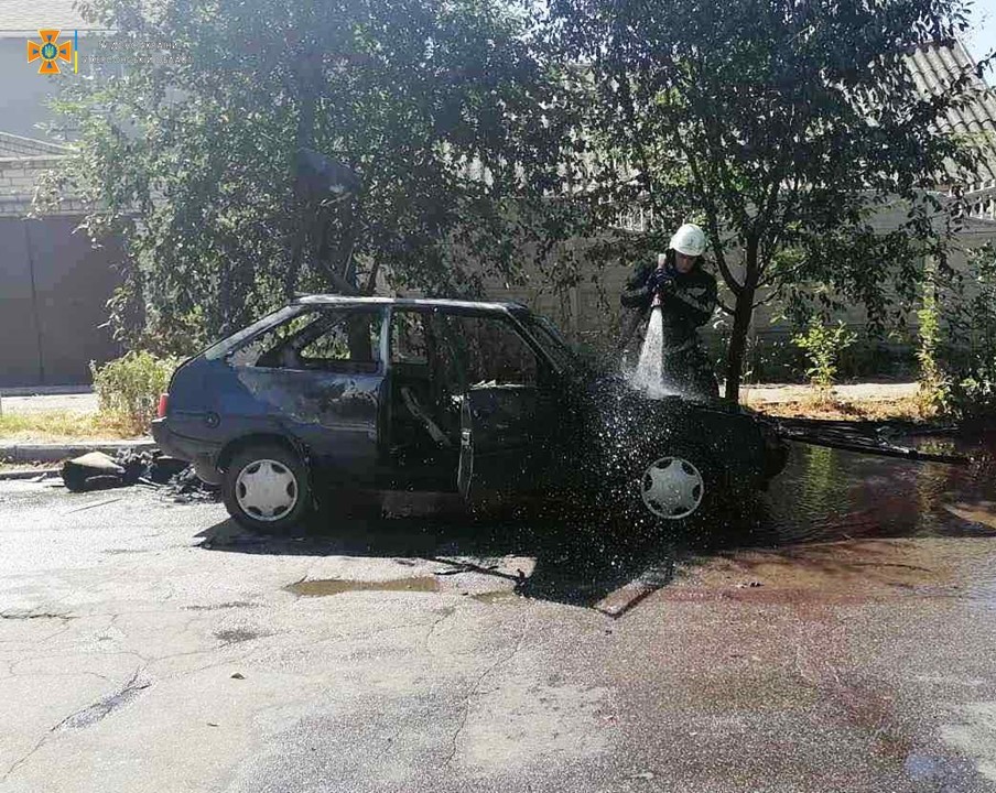 Херсонские спасатели тушили горящий автомобиль
