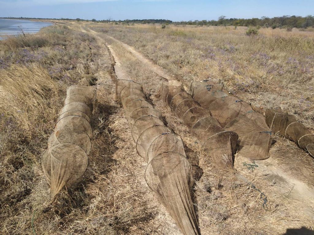 Так, вчера, во время патрулирования Джарылгачского залива, вблизи населенного пункта Лиманское пограничники Херсонского отряда обнаружили 5 браконьерских ловушек без живых водных биоресурсов.
