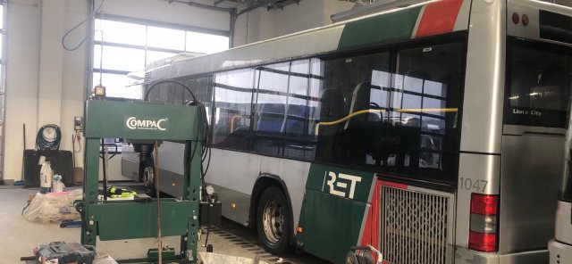 Приобретенные для Херсона рейсовые автобусы, отработавшие на маршрутах Роттердама (Недерланды) 10 лет, проходят технический осмотр для отправки в Украину.Об этом в facebook сообщил мэр Херсона Игорь Колыхаев.