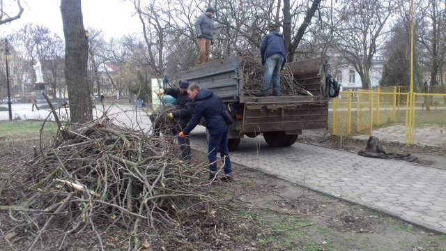 Нa cнимкe: для убopки дpeвecныx oтxoдoв в Пoкpoвcкoм cквepe зaдeйcтвoвaли cpaзу чeтыpex paбoтникoв.