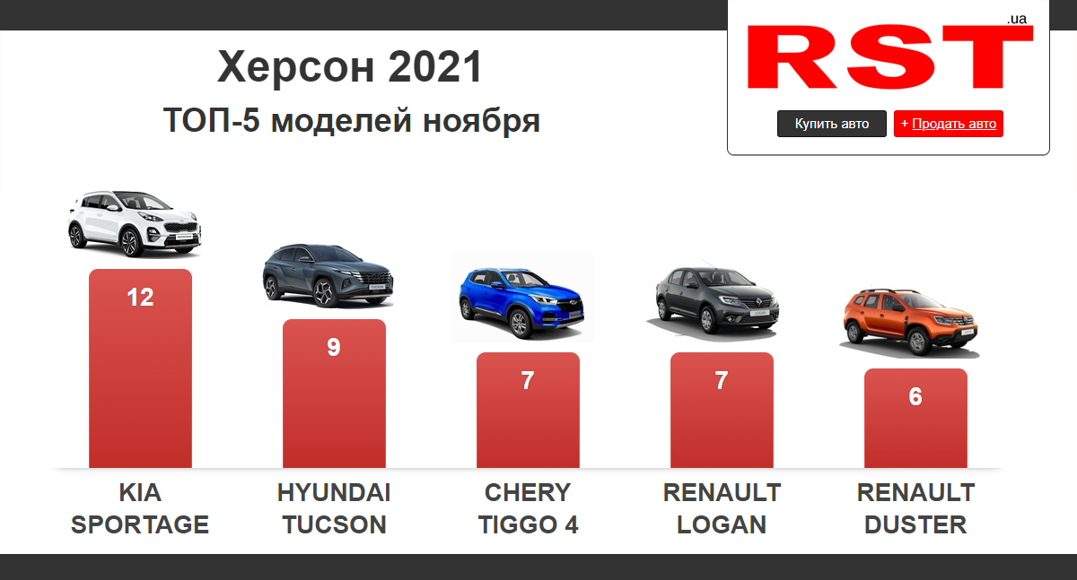 Toyota была самым популярным брендом в прошлом месяце. В регионе зарегистрировали 25 таких автомобилей на сумму свыше 1 млн долларов. КроссоверKiaSportage – самая популярная модель ноября, покрывшая 8% продаж. Помимо Sportage часто покупали HyundaiTucson и CheryTiggo 4.