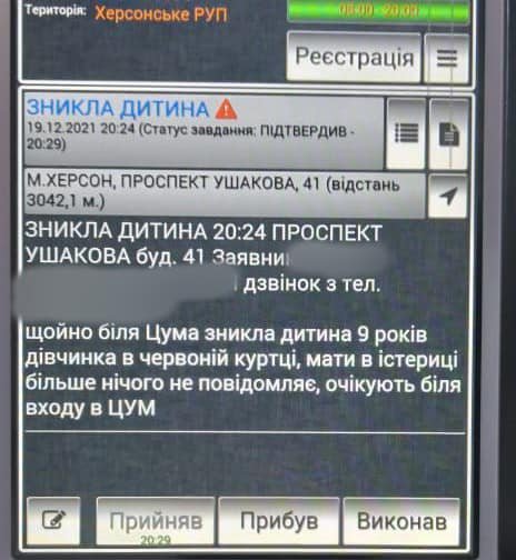 Так, в 20:24 нацгвардейцы получили вызов на служебный планшет от местной жительницы, которая в районе ЦУМа потеряла малолетнюю дочь.