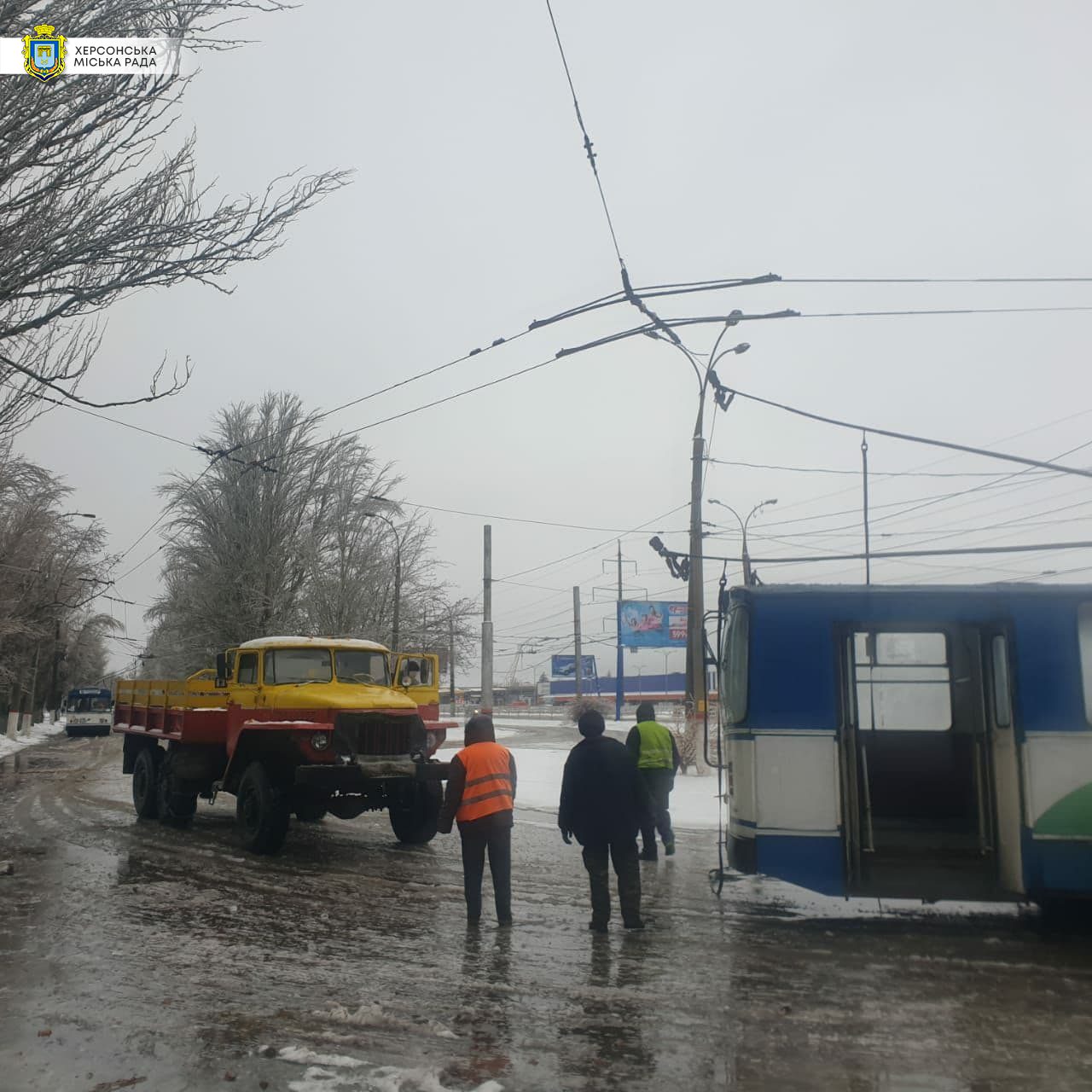 Утром маршруток мало, и они забиты, троллейбусы не ездят — обмерзла контактная сеть. Но профильный заместитель мэра обещает, что троллейбусы появятся на дорогах через один-полтора часа.