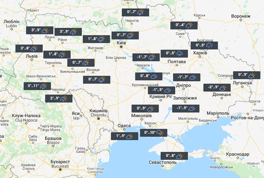 Сегодня в Украине немного потеплеет, Местами столбики термометров покажут +9°...+11°. По всей стране будет небольшая облачность, однако на западе, севере, местами в центре, а также в Харьковской области ожидаются дожди.