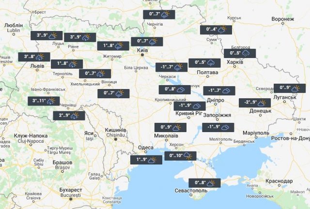 Жителей Центра ждет небольшая облачность. Температура будет колебаться в пределах +5°...+9°. Дожди ожидаются в Винницкой, Черкасской и Полтавской областях.