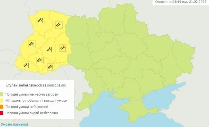 "21 февраля в западных областях порывы ветра 15-20 м/с", - говорится в предупреждении.