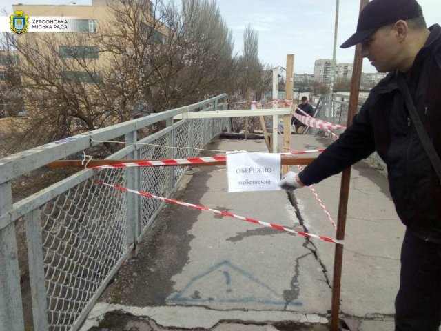 У березні на пішохідному мостопереході через залізничні колії по вул. Паровозна, стався зсув залізобетонної плити, що утворило значну щілину між плитами. На даний час через проведення бойових дій на території Херсонської області, Херсонська дистанція коліії регіональної філії «Одеська залізниця» не може здійснити проведення ремонтних робіт.