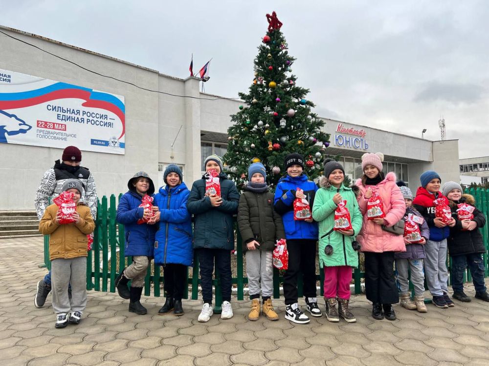 Дітей зібрали, щоб показово вручити їм подарунки від окупантів.