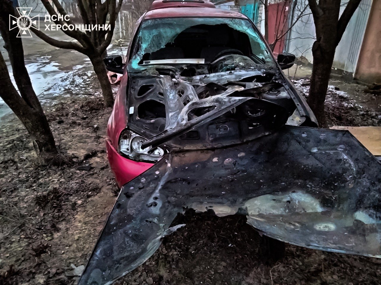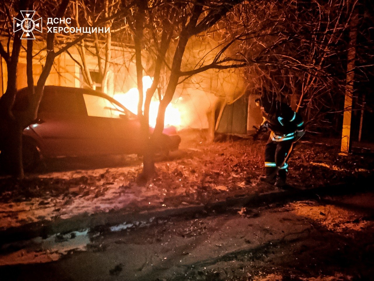 Цієї ночі, через влучання ворожих боєприпасів, загорівся легковий автомобіль в одному з районів міста Херсон.