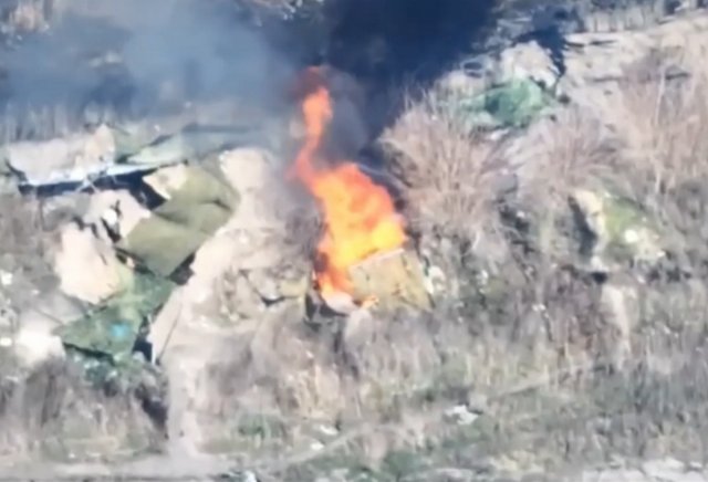 Тобто, троє ворожих пілотів ліквідовані, двоє поранені. На ролику видно, як палає ворожа позиція. Чим саме її вразили, не ясно, але очевидно, що удар скоригували наші аеророзвідники.