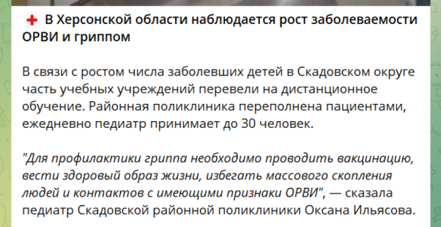 Росіяни вже не приховують пандемії. Щоправда, кажуть виключно про грип та ГРВІ, хоча джерела Район.Скадовськ повідомляють зокрема про ознаки коронавірусу у дітей та дорослих саме у Скадовську.