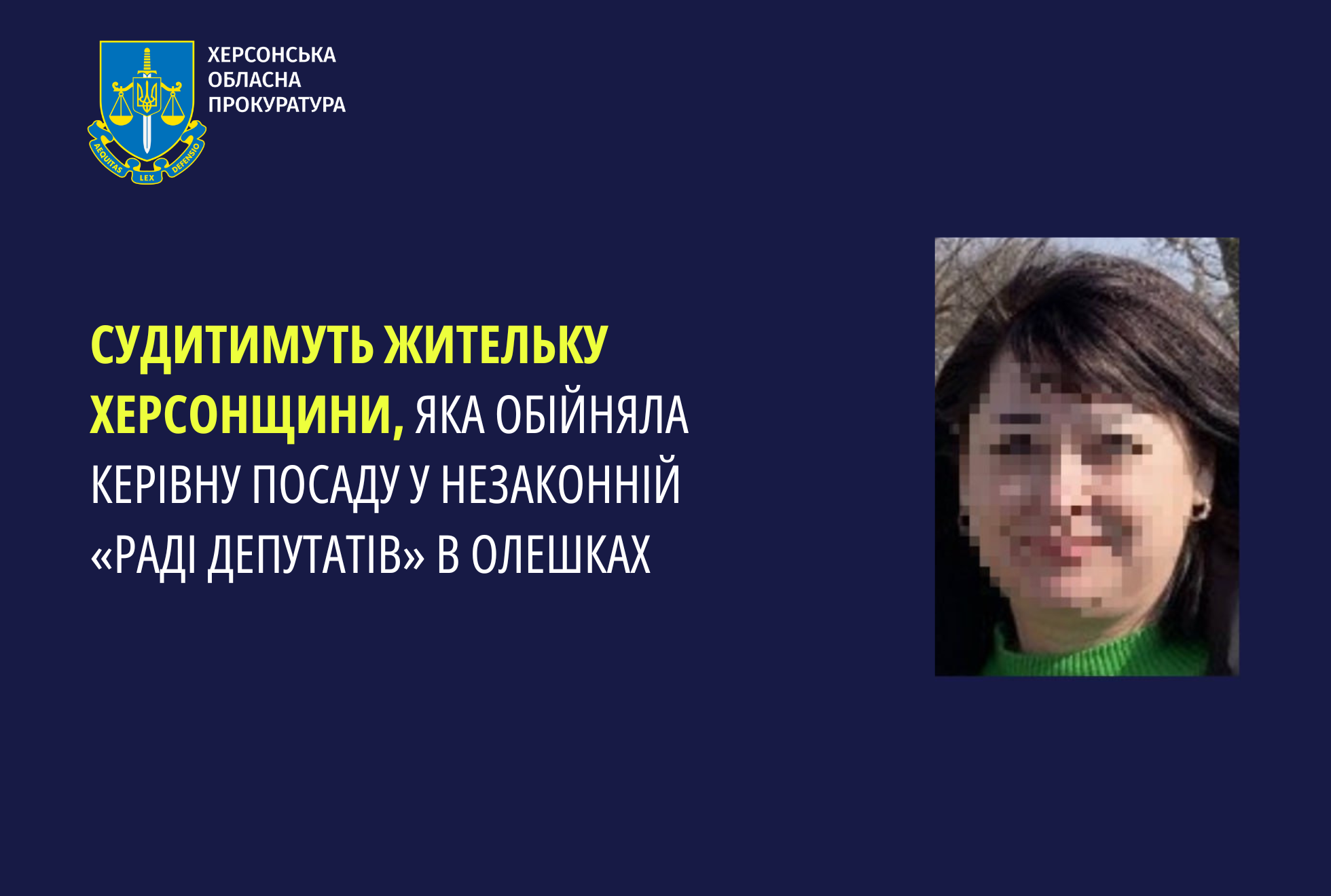 Слідством встановлено, що обвинувачена у вересні 2023 року приєдналася до путинської партії «єдина росія» та взяла участь у виборах до незаконного органу влади – «совета депутатов Алешкинского муниципального округа первого созыва». Після отримання «мандату» жінку обрали так званою «заступницею голови ради».