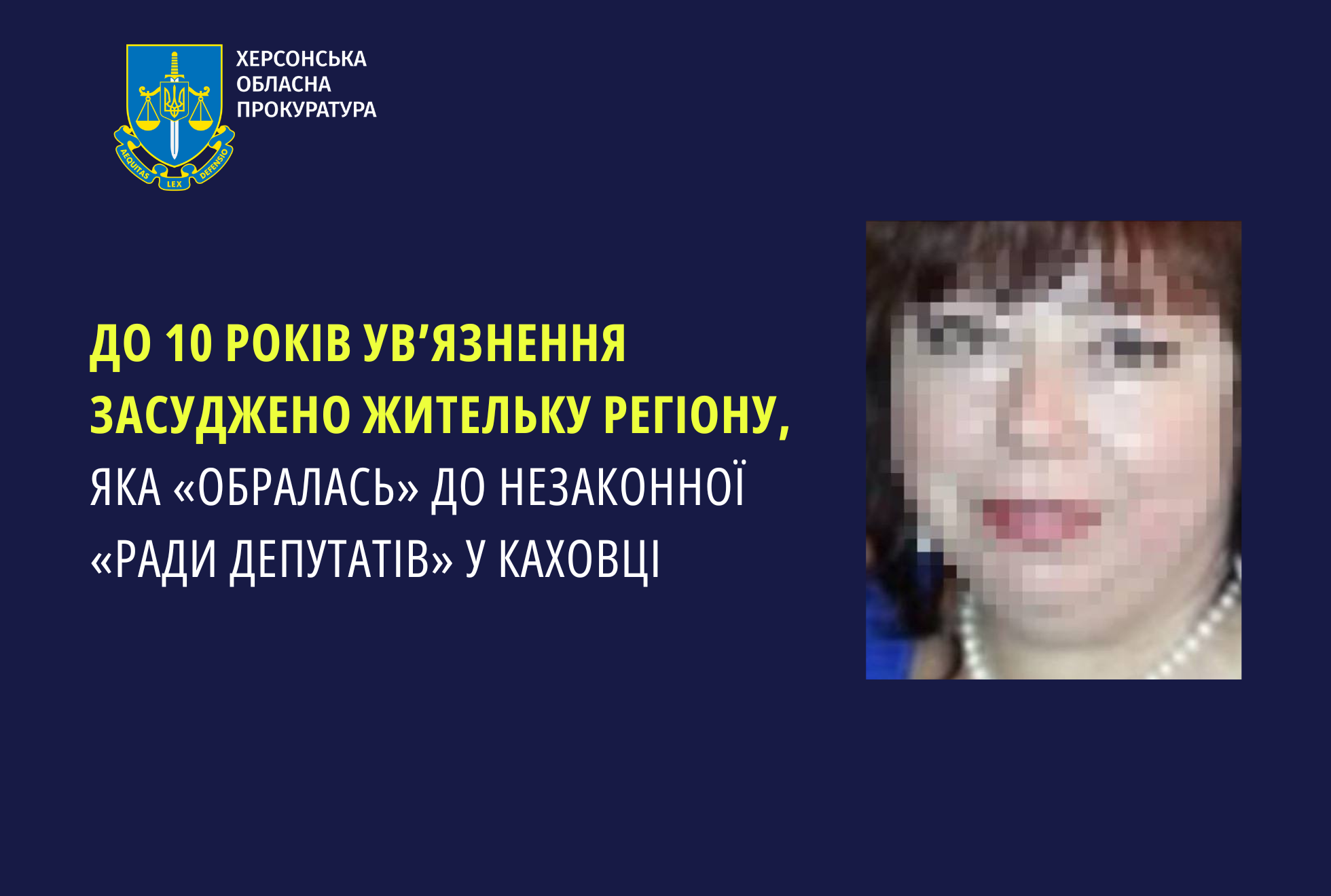 Доведено, що засуджена у серпні 2023 року подала свою кандидатуру та у вересні того ж року обралась так званим «депутатом» від партії «єдина росія» до незаконного органу влади - «ради депутатів Каховського муніципального округу першого скликання».