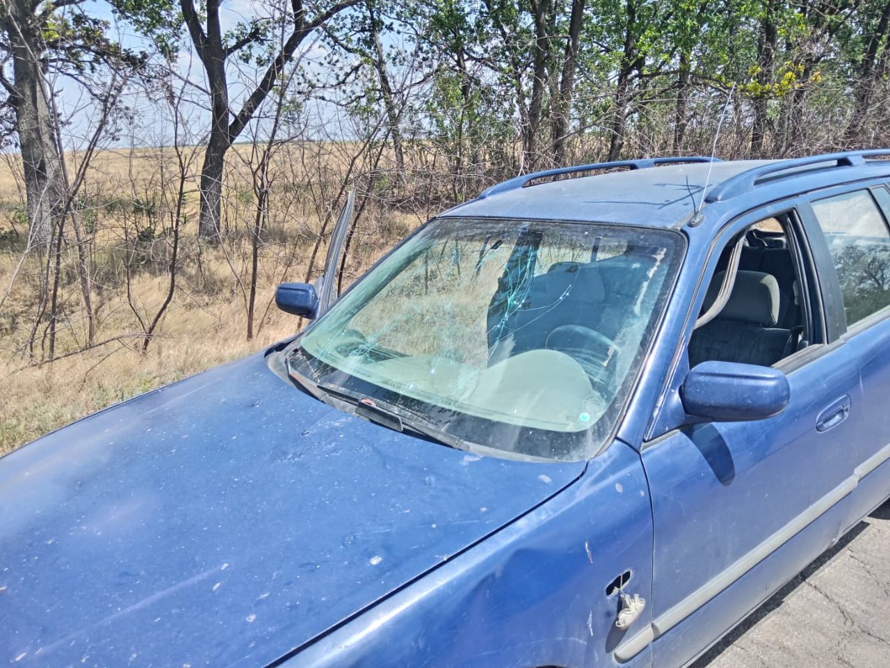 На фото - понівечена російськими окупантами автівка, яка доставляла хліб до Червоного Маяка.