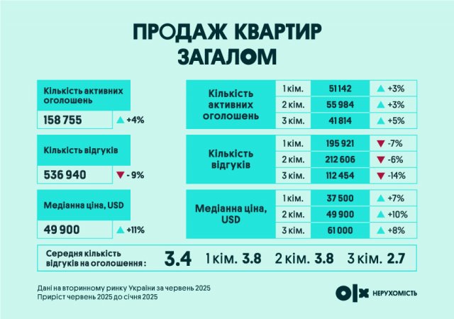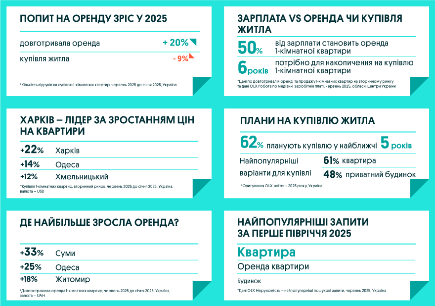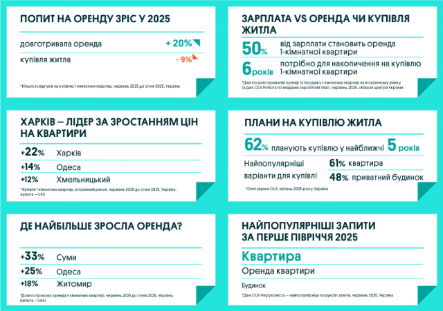 Команда OLX Нерухомість підготувала масштабний дайджест про те, що відбувалось на ринку нерухомості у першому півріччі 2025 року: де зріс попит на купівлю та оренду житла, у яких містах найбільше зросли ціни та що очікувати у другій половині 2025 року.