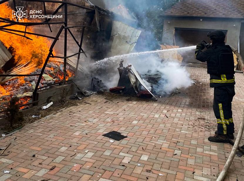 Влучання боєприпасів припали по житлових кварталах міста Херсон та с. Комишани. Горіли приватні житлові будинки, господарча споруда, легковий автомобіль та сухостій.