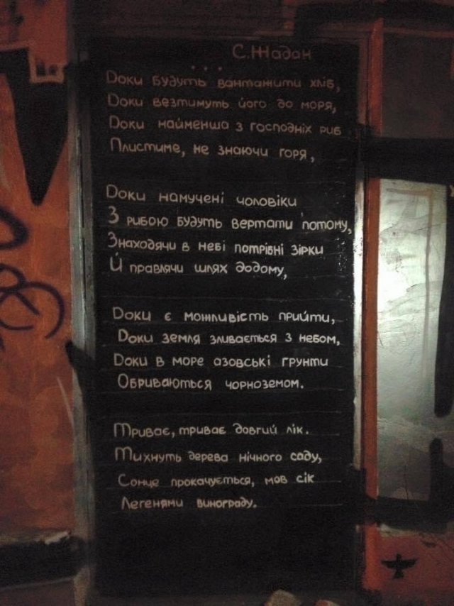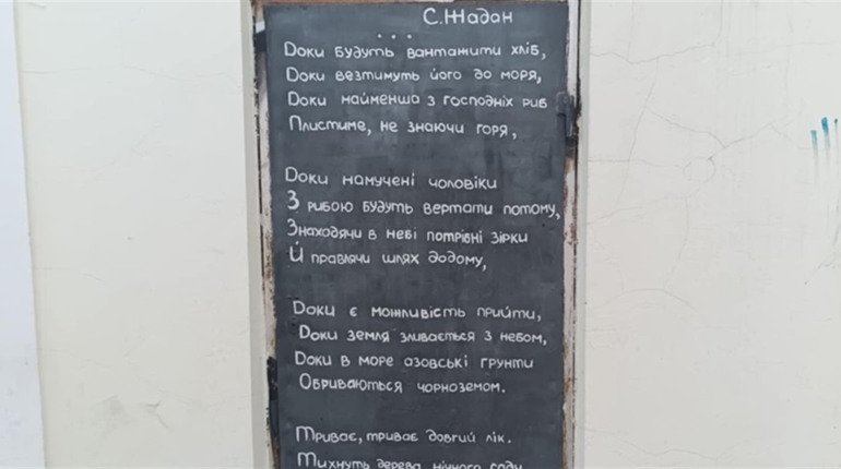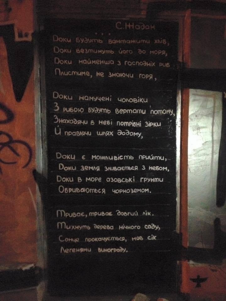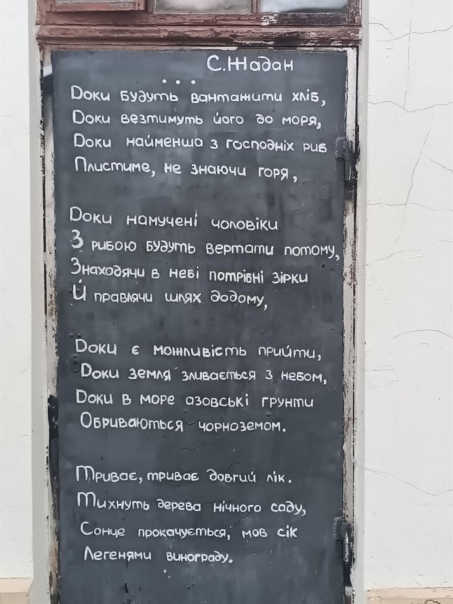 Це перші рядки вірша відомого на весь світ українського письменника Сергія Жадана, який неодноразово був в Херсоні, зокрема стараннями головної редакторки Кавун.City Євгенії Вірлич та культурної діячки з Херсона Марії Мороз. У 2016 році саме Марія разом із друзями написали частину цього вірша Сергія Жадана на одній із дверей в середмісті Херсона. Там він є і досі.