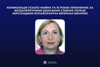 Жінці інкримінували колабораційну діяльність. Уважаючи, що наразі вона перебуває на непідконтрольній Україні території, їй оголосили вирок заочно – 10 років позбавлення волі з конфіскацією майна.