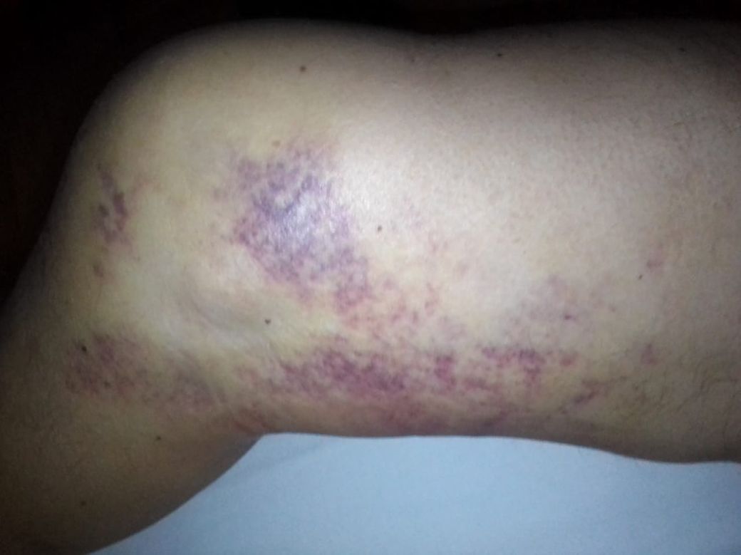 "Кийком по дупі, по ногах. Ноги в мене були такі чорні, як штани. Це називається в них "прийомка". Декого били лінійкою металевою з нержавійки. Били по спині, такі були гематоми на всю спину. Кому що. Мене трубою такою ПВХ били".