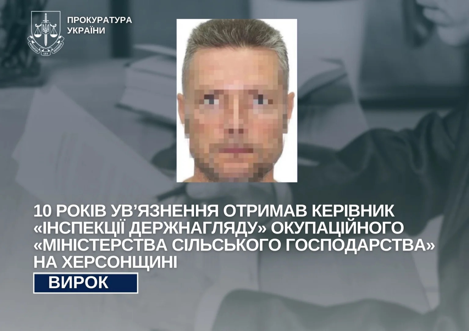 Слідством доведено, що у 2022 році чоловік обійняв посаду начальника інспекції державного нагляду в окупаційному департаменті агропромислового комплексу. Після того, як структуру перетворили на окупаційне міністерство сільського господарства і рибальства, засуджений незаконно очолив інспекцію державного нагляду Херсонського району.