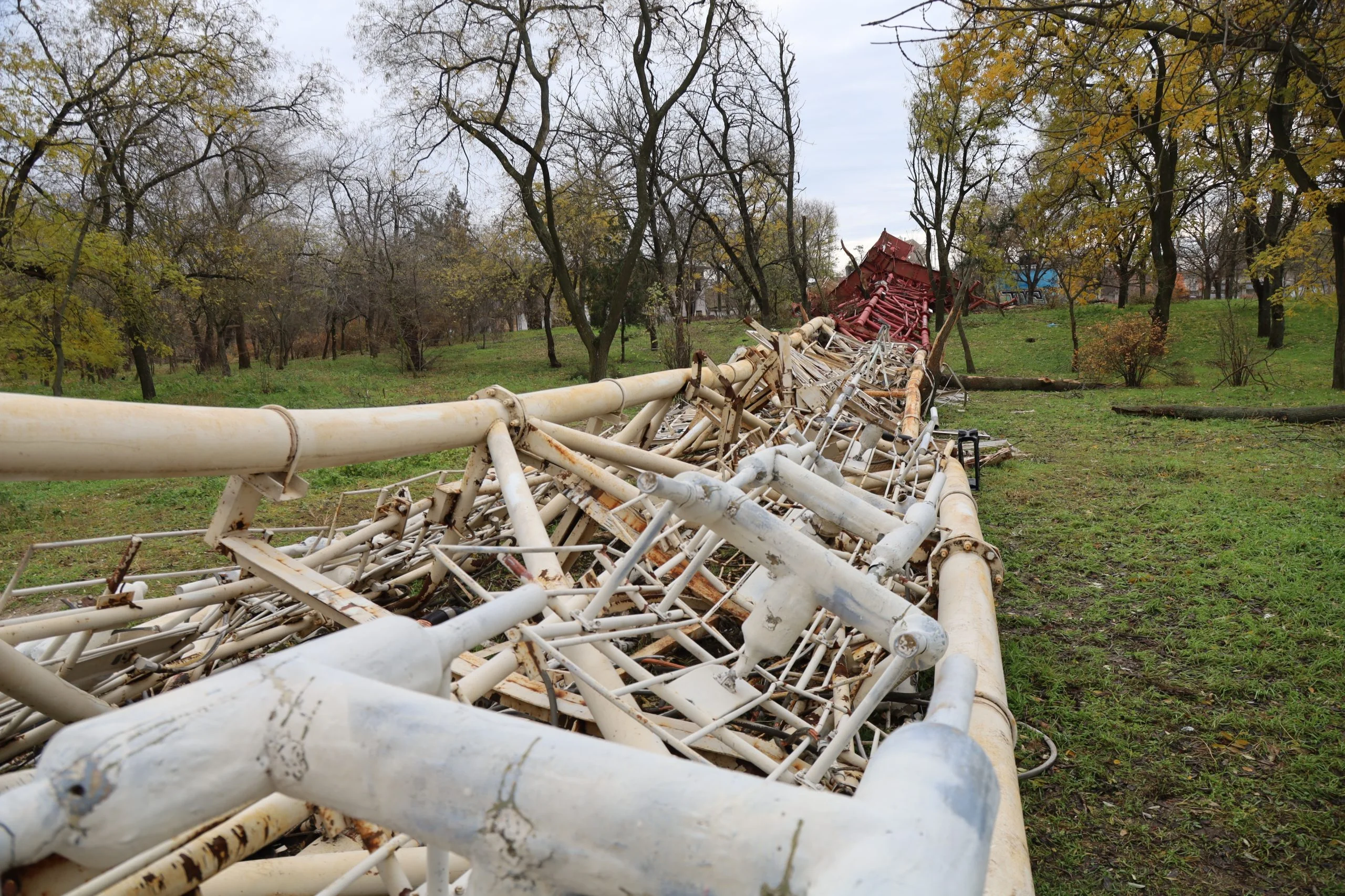 Під час відступу російські військові підірвали телевізійну вежу по вулиці Перекопська. Слідчі встановили, що було закладено сім вибухових зарядів біля основи телевежі, п’ять з яких вибухнули.