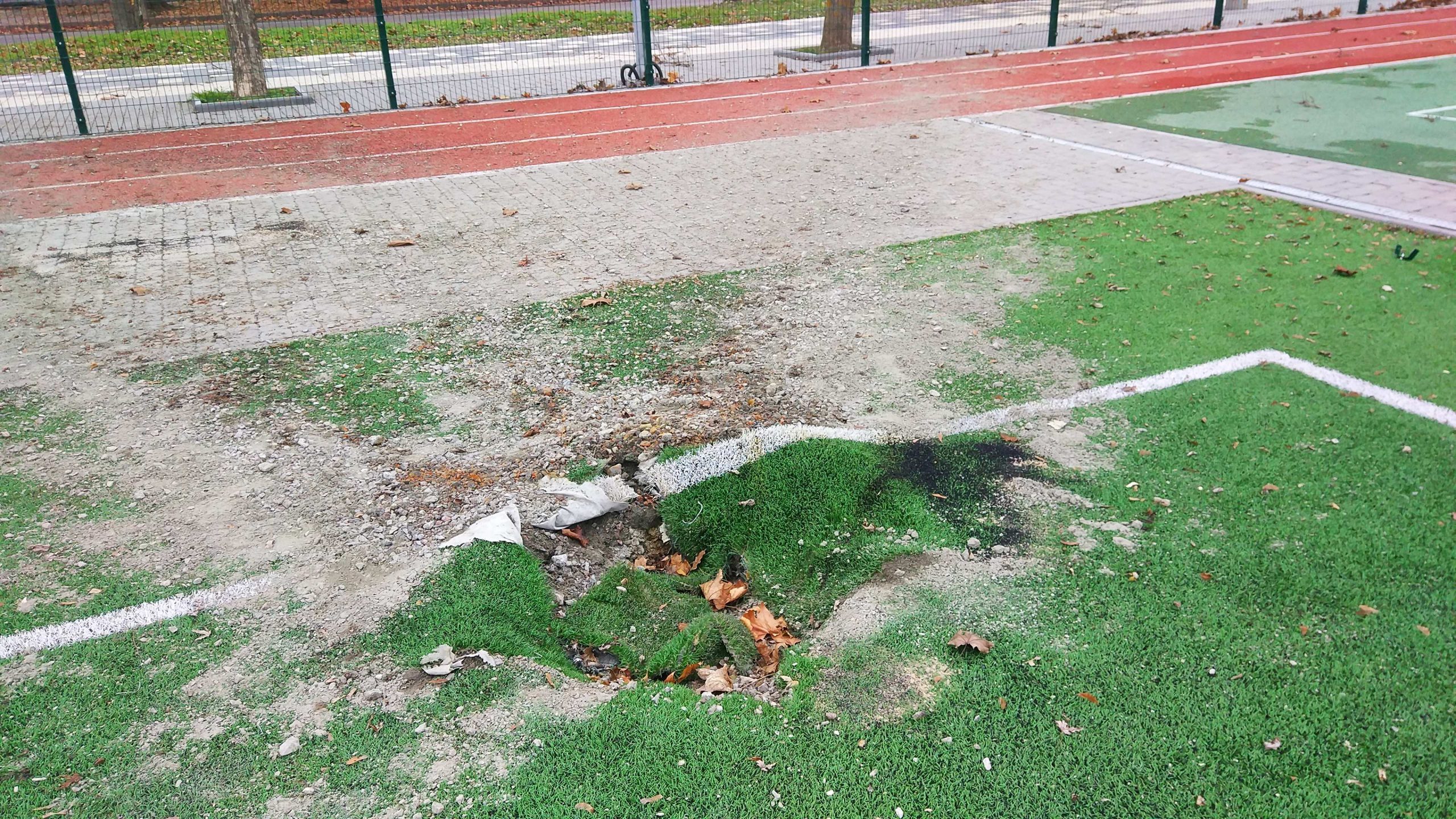 Воронки від мін є на полі стадіону та навколо нього у парковій зоні.