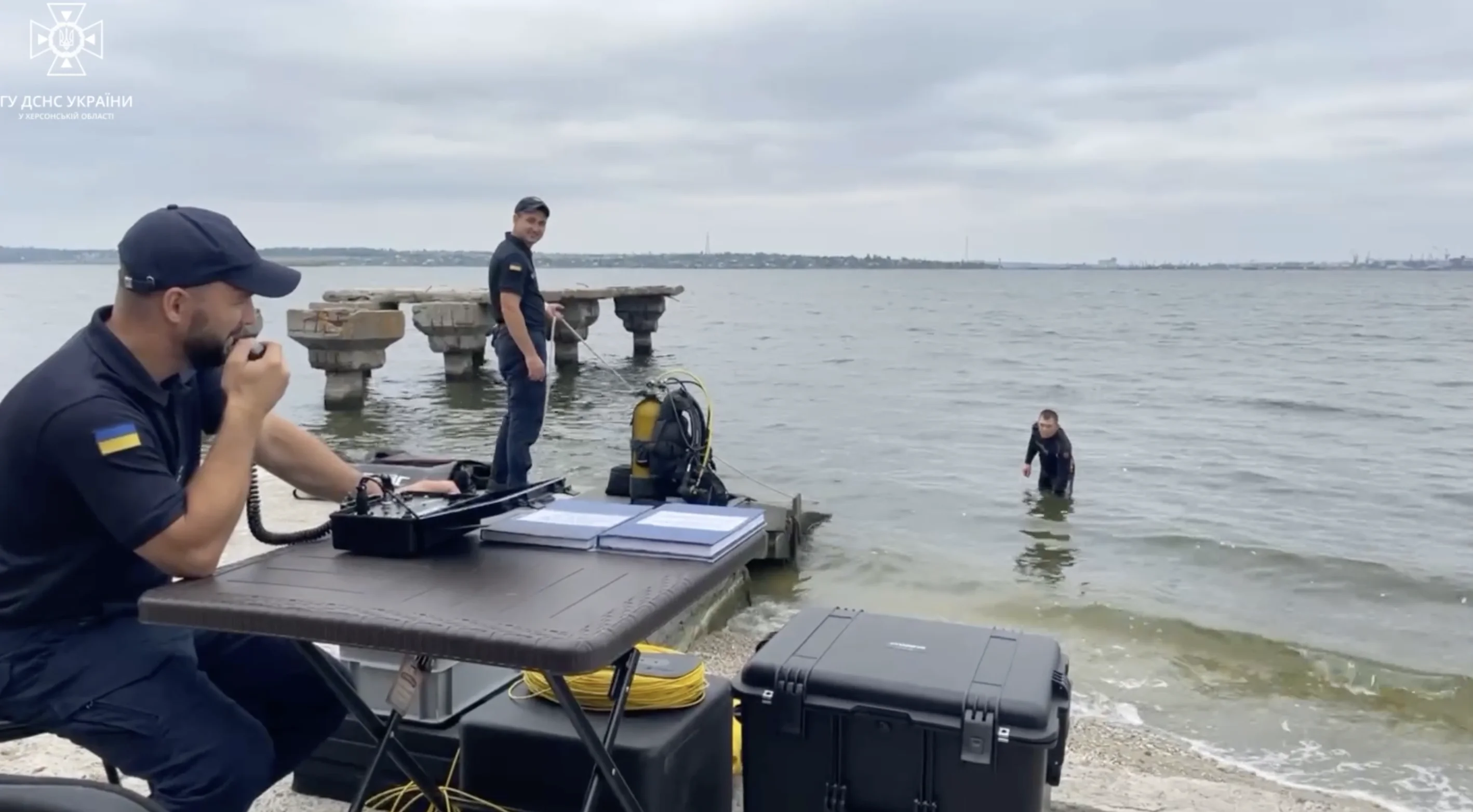 Зокрема, рятувальники показали процес розмінування дна річки за допомогою підводних дронів.