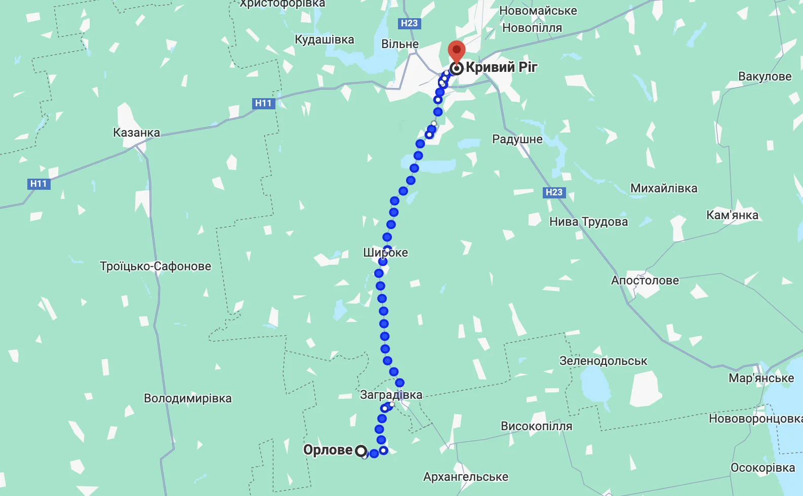 - 8:40 – Орлове(розворот і відправлення на Інгулець);