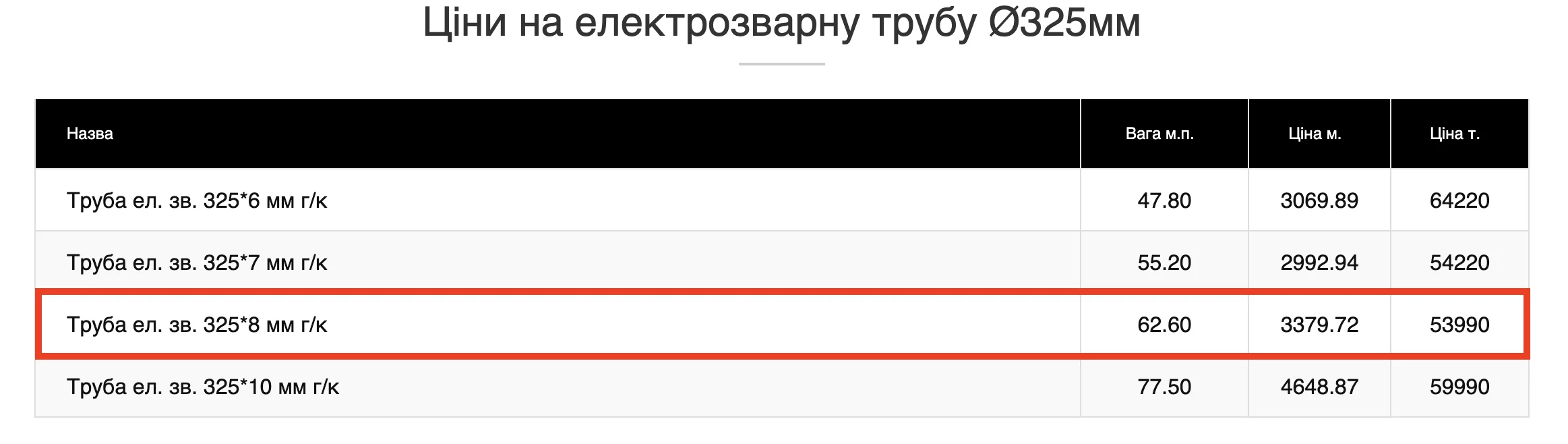 Труби діаметром 159×5 мм за запитом в інтернеті коштують 48,5 тис. грн за тонну, а діаметром 325×8 мм – 53,9 тис. грн за тонну, але “Херсонтеплоенерго” купує аналогічний товар за 49,4 та 61,5 тис. грн за тонну відповідно.