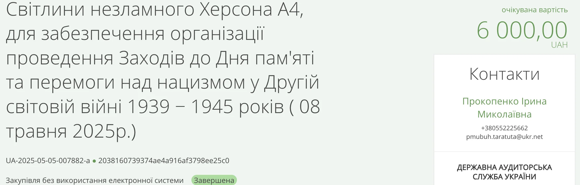 Для проведення заходів до Дня пам’яті та перемоги над нацизмом у Другій світовій війні управління культури Херсонської міської ради замовило фото та буклети. За них заплатять 12 тис. грн.