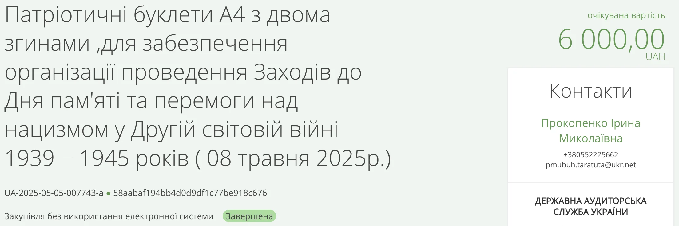 5 травня на порталі Prozorro управління міськради опублікувало дві закупівлі, які відбулися без використання електронної системи.