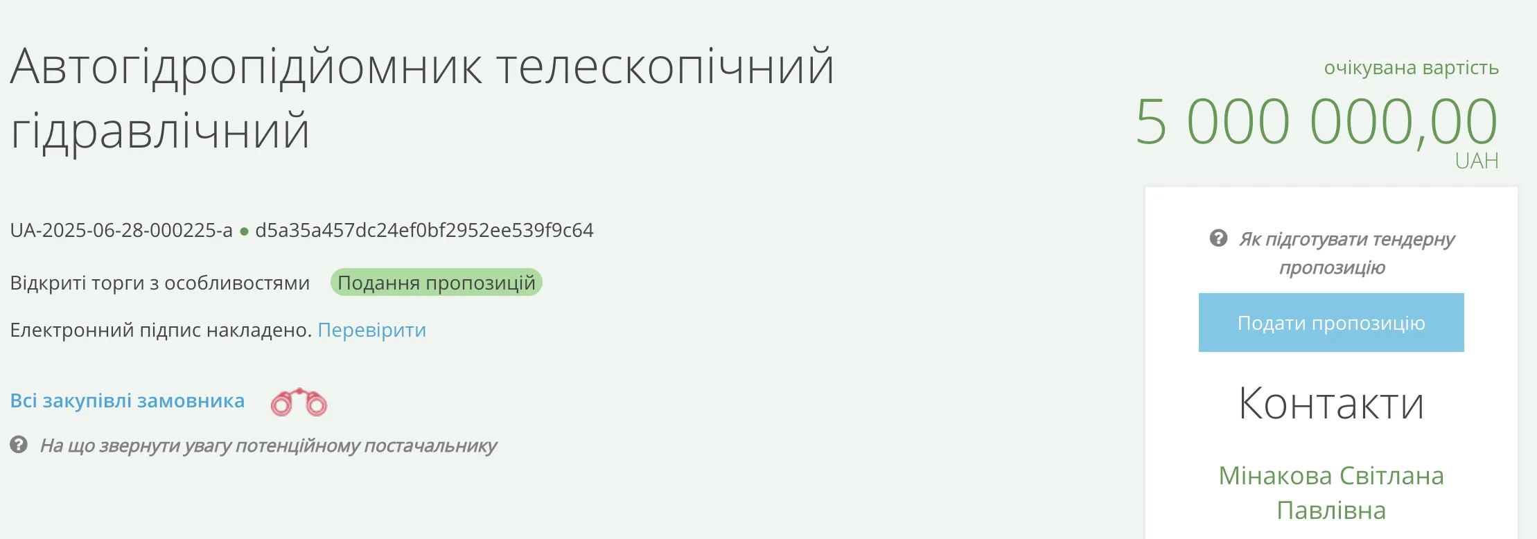 Підприємство планує купити один телескопічний гідравлічний автогідропідйомник, один сідельний тягач, два самоскиди, один гусеничний бульдозер, один напівпричіп-трал та один самохідний кран.