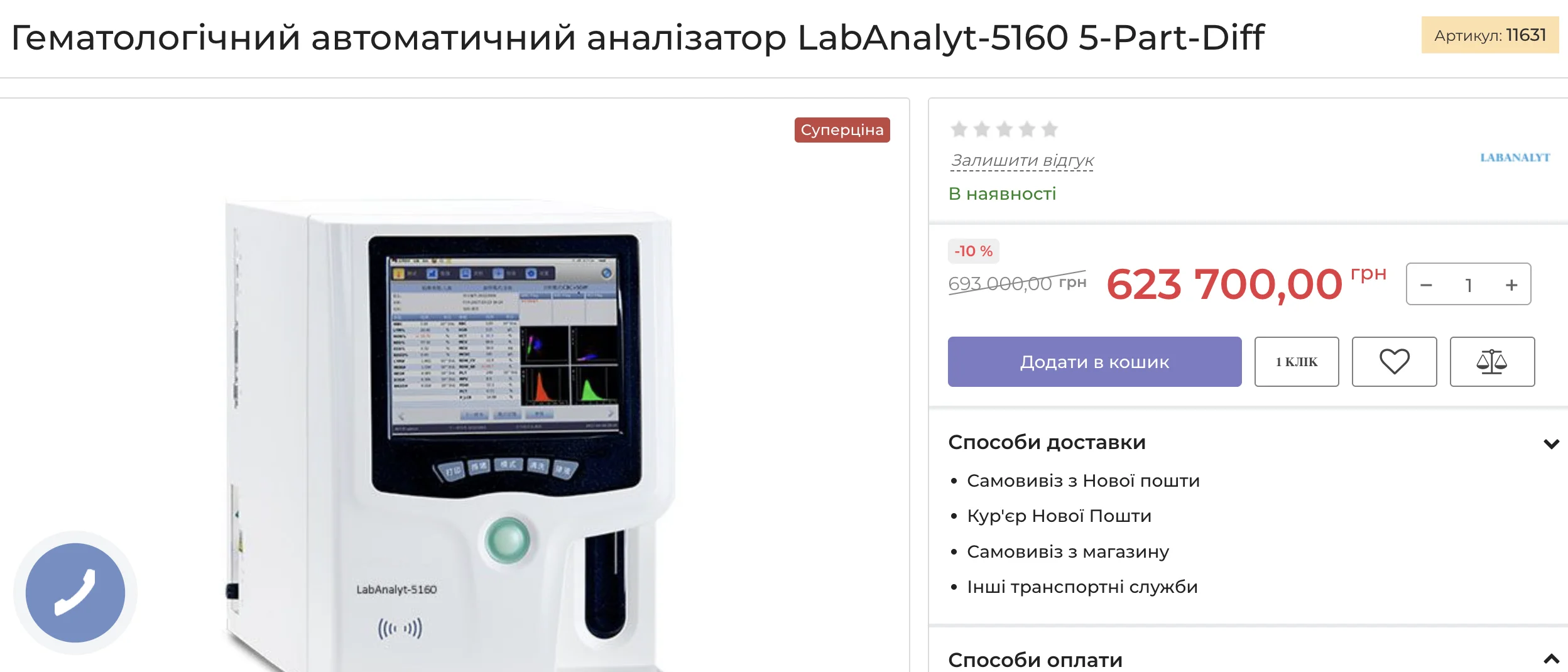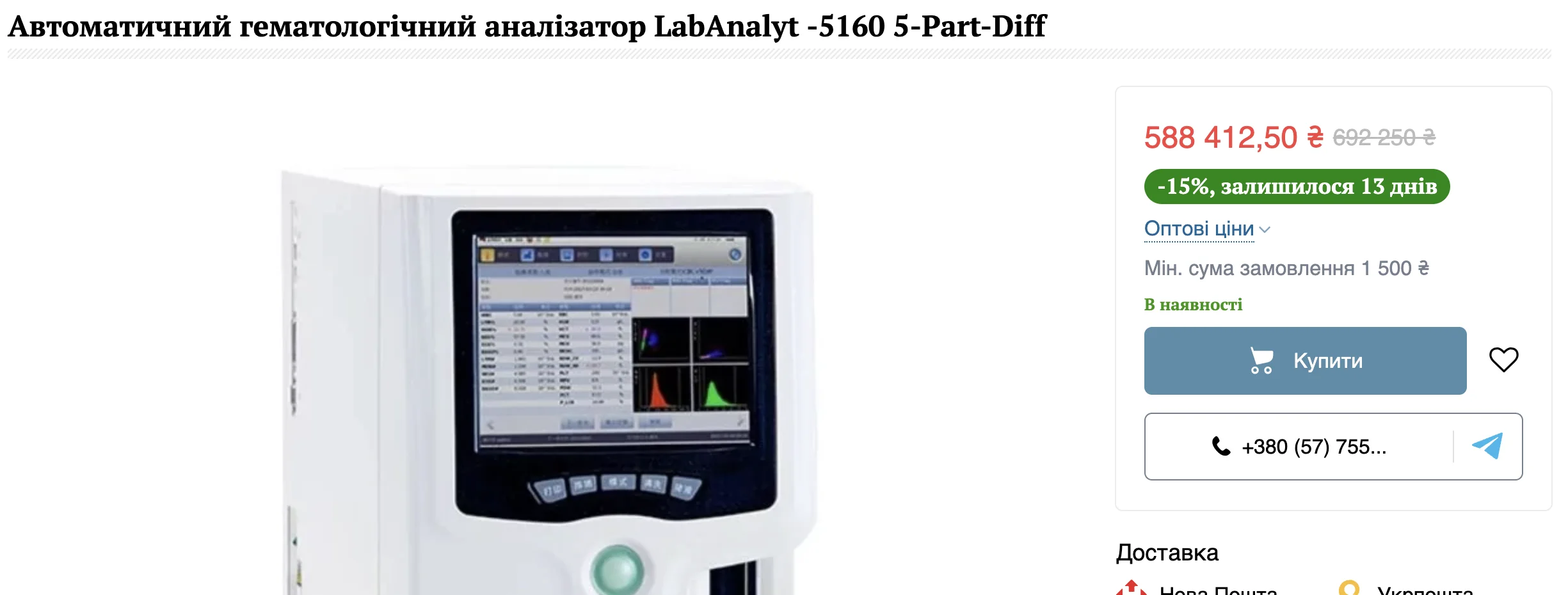 Зазначимо, що за запитом в інтернеті автоматичний гематологічний аналізатор “LabAnalyt 5160-5-Part-Diff” можна знайти за ціною у діапазоні 588-690 тис. грн (без доставки). Ротатор “SK-R30S-E” можна знайти за 7,2-11,4 тис. грн. Тобто з урахуванням послуг доставки херсонська лікарня придбає обладнання за цінами, що дещо перевищують середньоринкові.