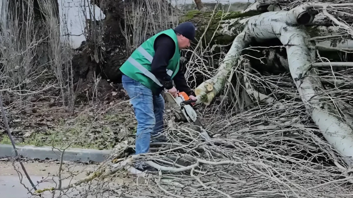 Зазначається, що дороги та тротуари розчищують комунальники: розпилюють стовбури та прибирають гілля. Наразі роботи з ліквідації наслідків негоди тривають.
