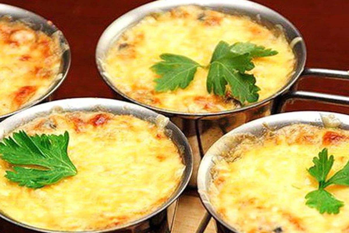 Окорочка моем, кладем в кастрюлю с кипящей водой и доводим до кипения. Уменьшаем огонь, снимаем пену, кладем очищенную целую луковицу, и варим на слабом огне 40-50 минут. За 15 минут до готовности кладем лавровый лист, солим, перчим. Окорочка достаем из бульона и остужаем. Мясо отделяем от костей и нарезаем соломкой. Лук чистим и нарезаем четвертькольцами. Грибы чистим, моем и варим 10 минут. Затем нарезаем небольшими кусочками. В сковороде разогревам растительное масло, выкладываем грибы, солим и жарим до испарения жидкости. Затем добавляем кусочек сливочного масла и жарим еще 6-8 минут. Грибы перекладываем в тарелку, обжариваем лук до мягкости. Отправляем к нему грибы, курицу и перемешиваем. Всыпаем муку, добавляем сметану и на слабом огне доводим до кипения. Солим, перчим. Раскладываем по кокотницам или порционным керамическим формочкам (можно запечь в булочках или хлебном каравае). Густо посыпаем тертым сыром. Запекаем 5-10 минут в заранее нагретой до 180°C духовке.