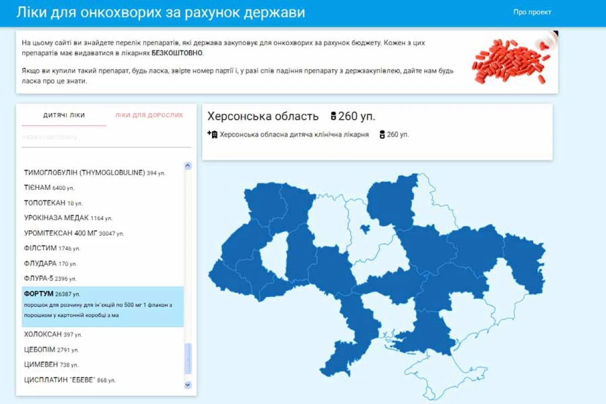 Сайт перевіряє наявність ліків для онкохворих у державних медичних закладах. Але активісти планують розширити його для контролю за наявністю й інших препаратів.