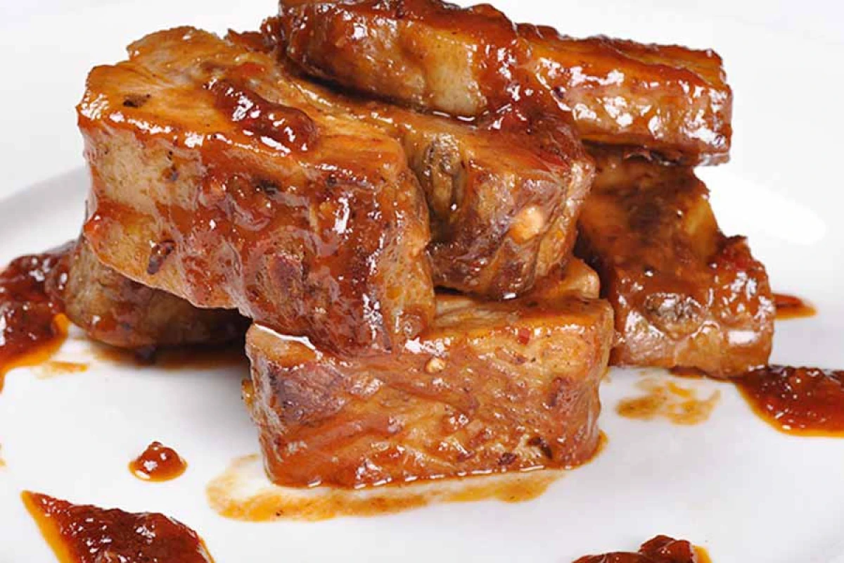 400-500г мякоти свинины, 2-3 ч ложки растительного масла, 1 ч ложка горчицы, 1 ст. ложка лимонного сока, 1 ч. ложка мёда, 1/2-2/3 ч ложки соли.