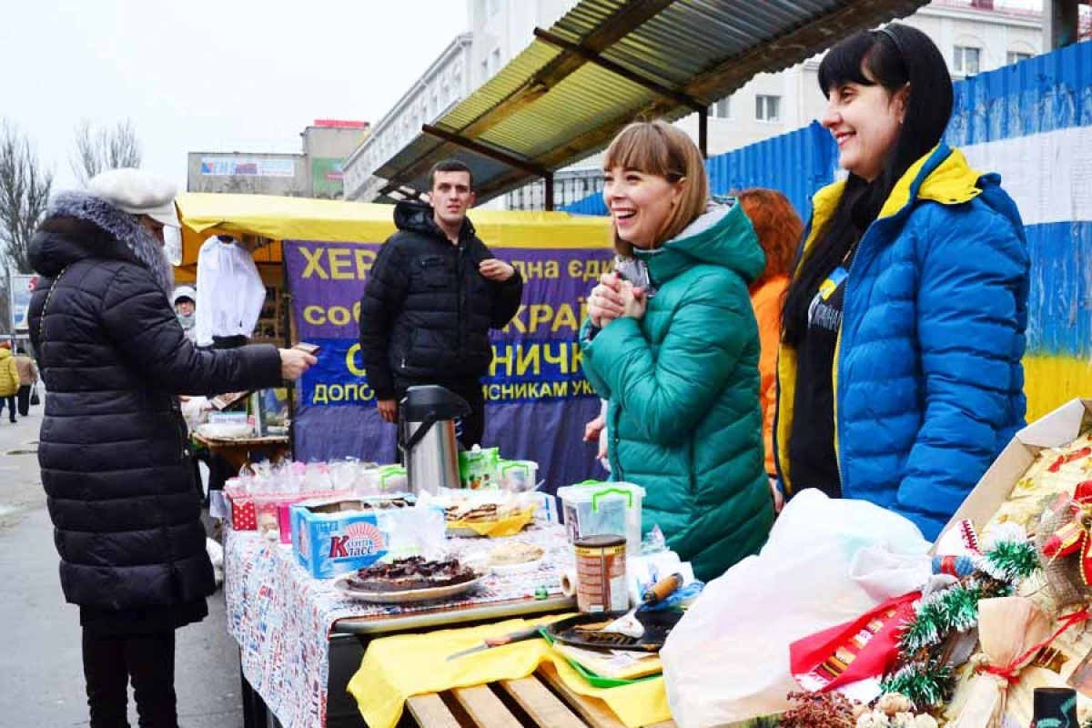 Ярмарка организована по инициативе херсонских активистов Евромайдана Анастасии Войнаровской и Евгении Вирлич. В организации и проведении мероприятия активно участвуют Херсонский центр помощи военным, «Кулинарная сотня», а также рядовые горожане. Желающим помочь Валентине Крицак, которая в связи с онкологическим заболеванием недавно перенесла тяжелую операцию на позвоночнике и нуждается в дальнейшем серьезном и дорогом лечении, предлагали купить книги, картины, работы местных умельцев, а также домашние кулинарные и кондитерские изделия.